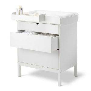 The changer is a versatile component that can be used on top of the Dresser, Bed or Cradle stand, and attaches safely to all components. Protective sides and a padded mattress offer a safe and comfortable place to change your baby. The height of the Changer encourages eye-contact and you can choose both a sideway or parent facing position depending on the base unit and room setting. The included storage box keeps essentials close at hand and can be attached to any side of the Changer. When your child is older, the Changer transforms into a play table by simply turning the Changer upside-down and placing it onto the cradle stand.